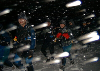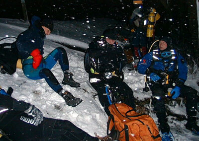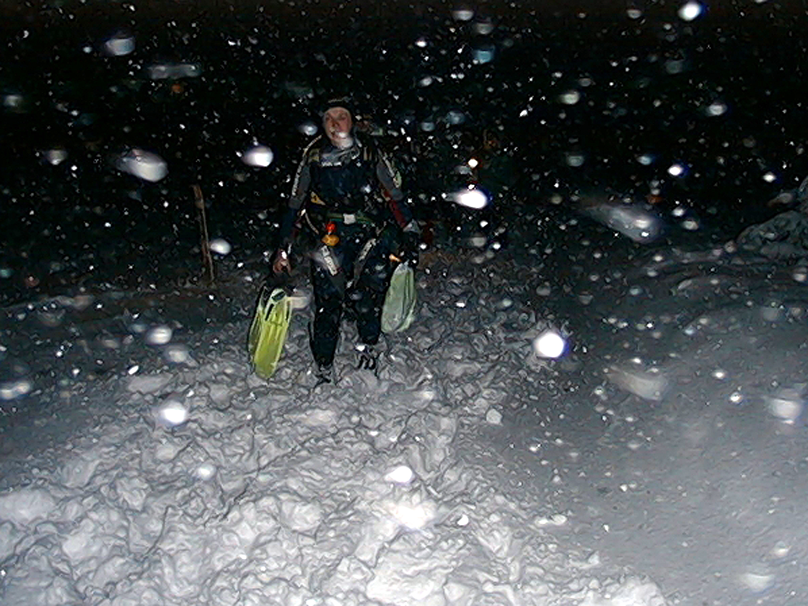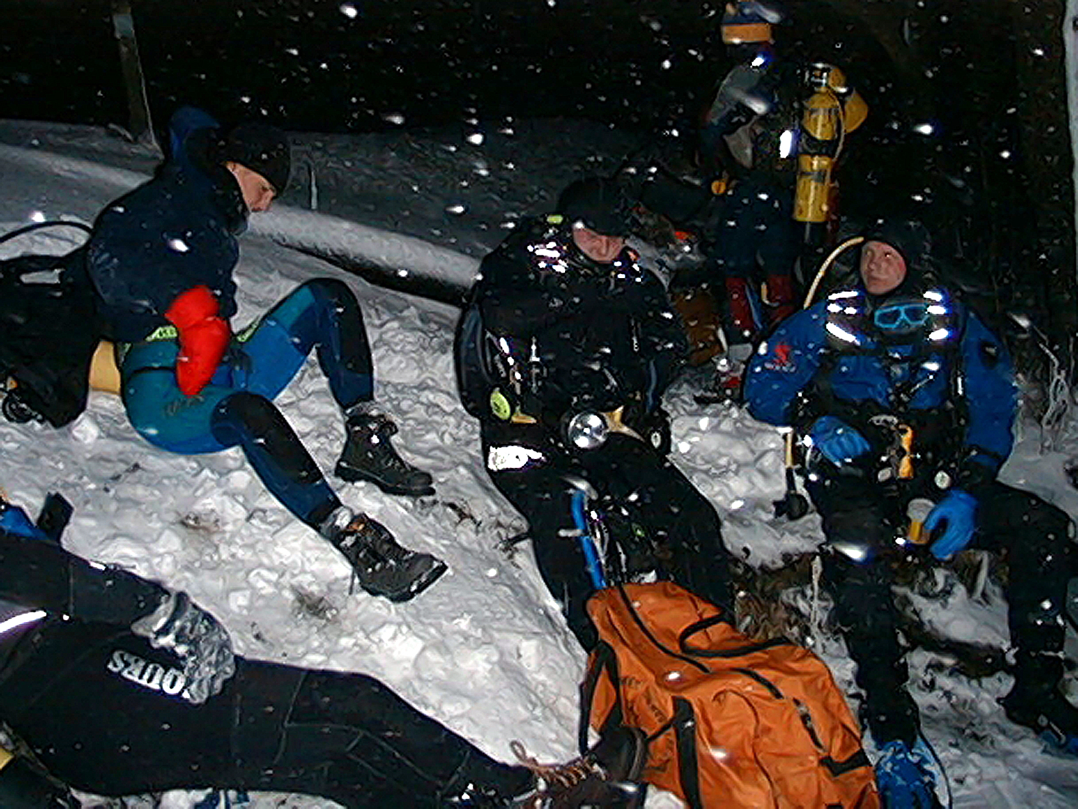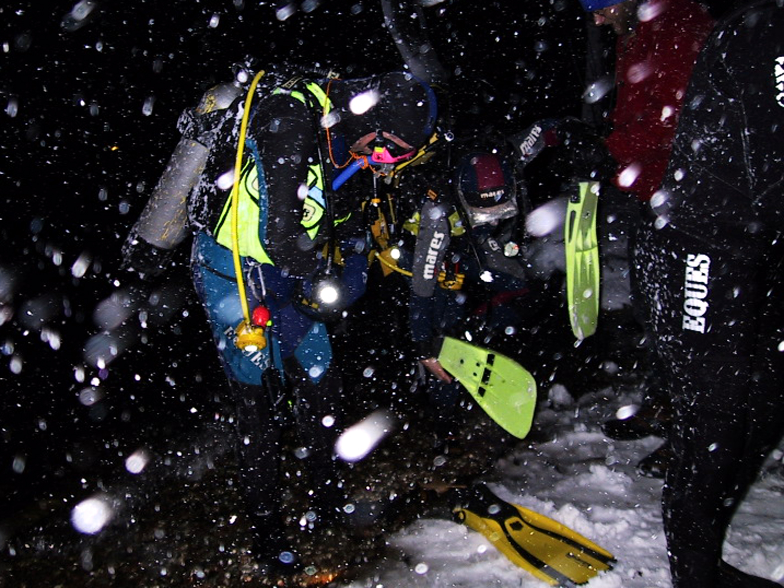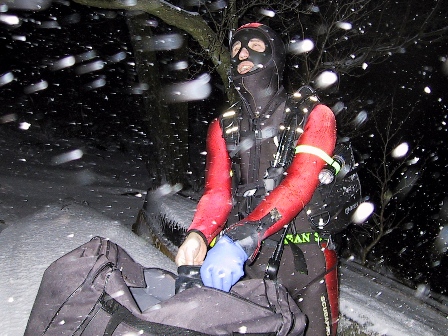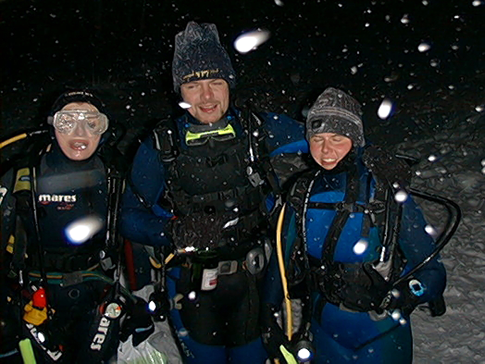 Plan był taki: jedziemy na Sylwestra nad Hańczę do Słowika, przed godziną dwunastą zakładamy sprzęt i zanurzamy się pod wodę na pierwszym parkingu. O północy pod wodą otwieramy butelki szampana i wznosimy toast. Wychodzimy z wody w już dwudziestym pierwszym wieku. Na Sylwestra zjawił się tłum klubowiczów, zatem ustaliliśmy, że pod wodę schodzimy parami, a każda para ma swoja butelkę szampana. Wszystko poszło zgodnie z planem, nie przeszkadzał nam nawet śnieg, który zaczął obficie sypać. Nad wodę nie dało się dojechać, więc poszliśmy ubrani w pianki z butlami na piechotę. Samo nurkowanie było magiczne i nie da się go opisać. Natomiast w drodze powrotnej z nurkowania okazało się, że dróg już nie ma. Z trudem, po pas w śniegu dotarliśmy do Słowika. Następnego dnia mieliśmy wyjeżdżać do Warszawy. Po odkopaniu samochodów, traktor przeciągał każdy samochód osobno przez Błaskowiznę. Później czekaliśmy na pługi i tak, odcinek po odcinku, posuwaliśmy się do przodu. Do Jeleniewa dotarliśmy po siedmiu godzinach. Od Suwałk do Warszawy nie było już grama śniegu.