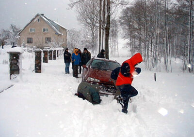 Jako ciekawostkę można dodać, że następnego roku również pojechaliśmy na Sylwestra do Słowika i także pierwszego stycznia zaczął sypać śnieg. Większość z nas, pomna sytuacji z przed roku, zwinęła się szybko do Warszawy ale części się nie spieszyło – ci zostali w Błaskowiźnie jeszcze tydzień, bo tym razem pługi nie dotarły.